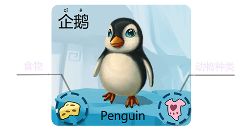小包含 30 张卡片 80 个种类的动物;每张卡片皆以精致的动态呈现动物们的习性、食物、居住环境、以及对应的中英文单词发音,爸爸妈妈只需一套卡片就可以让小朋友学习到多种不同的内容喔!