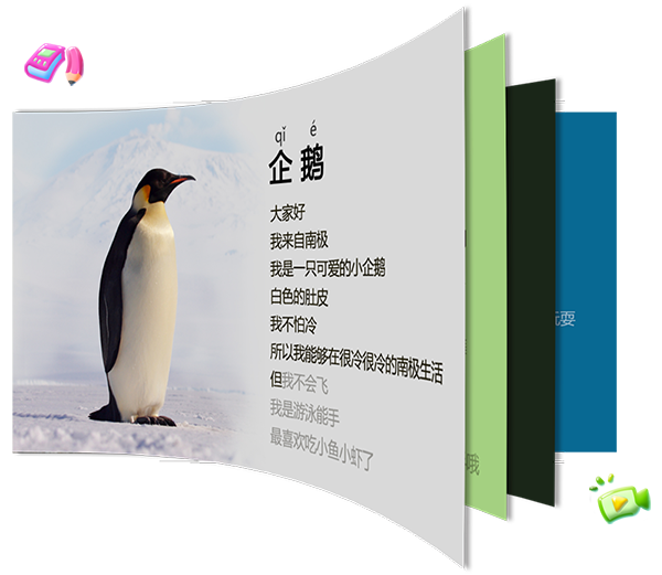 透过语音、图像及文字呈现动物百科,除了让小朋友了解动物们的相关知识,还可培养小朋友们的阅读及听说能力,一举数得。